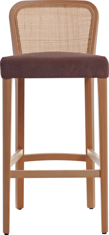 - Upholstered webbed seat & rattan cane back