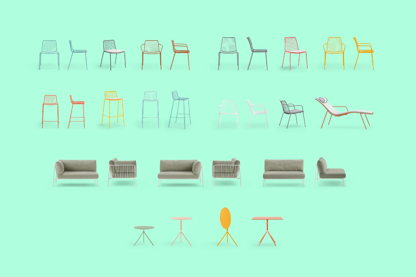 - Various exclusive Pedrali waterproof fabrics, please ask for details